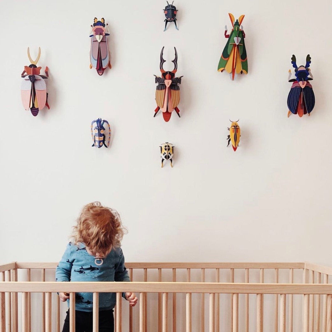 In real animal life, they inconspicuously scuttle about under leaves and on branches, but these flamboyant and colourful beetles – from every corner of the world – look as if they have just stepped off the catwalk. Give them a place among your artistic treasures, hang them on the wall, let them crawl around on your table and create your own insect story.