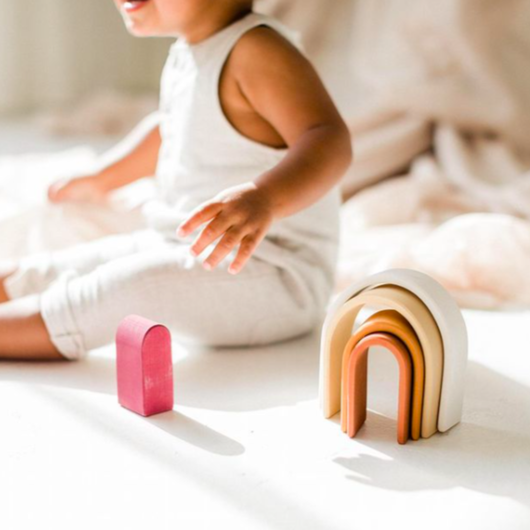 Grippy enough for balancing and stacking and smooth enough for little hands. These small arches are perfectly sized for little hands who are just beginning their stacking phase.