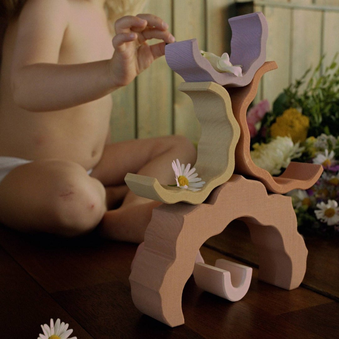 Grippy enough for balancing and stacking and smooth enough for little hands. These small arches are perfectly sized for little hands who are just beginning their stacking phase.